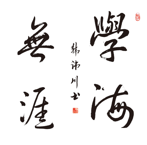 ▲韩沛川作品:取法王羲之,用笔遒劲有力,能够有良好的提按、时转。“學”字的结构稍欠推敲。其他字就比较精彩,尤其是“海”字,草书,时转较好,因此被评为二等奖。