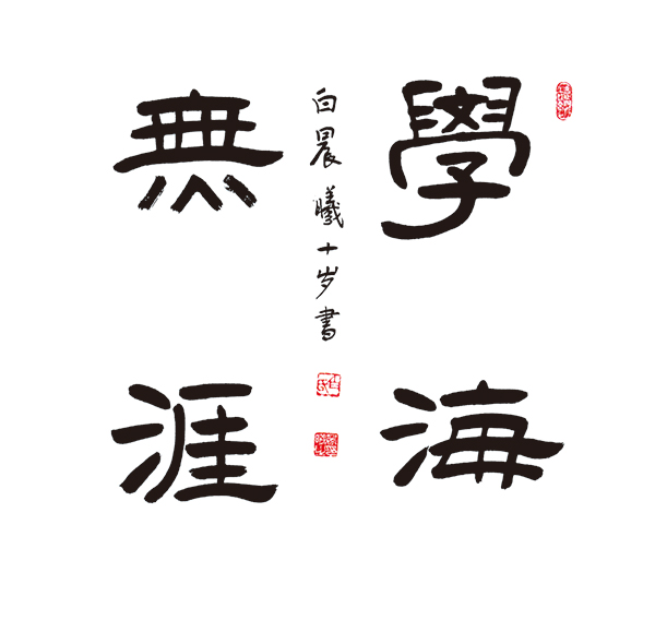 白晨曦的作品:用笔遒劲,笔笔中锋,能够体现出对用笔较好的驾驭程度,书写的章法比较完整。缺点是隶书的取法不够明确,笔和笔之间的关系,横和横之间的关系,点和点之间的关系,处理的稍显生硬,没有体现出对古典精华的吸收程度。被评为三等奖。