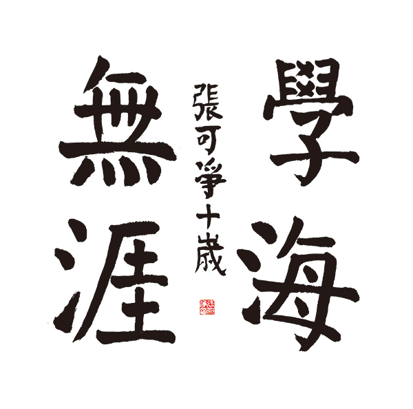 ▲   张可净作品:取法颜真卿,线条陈厚有力,笔笔中锋,起收转和做的比较好,横划写的比较到位,“涯”字的撇写的较好。四个字每笔都写的比较认真。缺点是结构上对字收放的节奏不到位,如“學”字的结构没有写好,没有良好的收放。被评为三等奖。