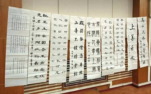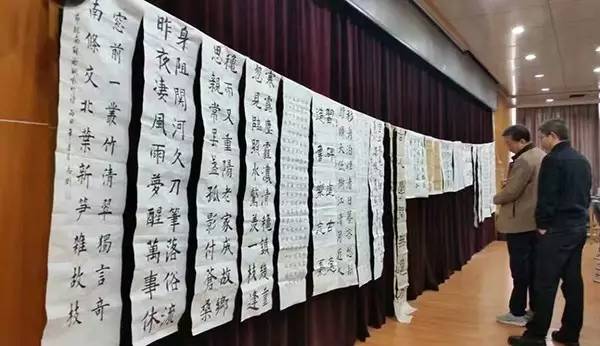 学员经过十天的学习培训,相互交流,开阔了眼界,增长了知识,有书法基础的学员认真研习书法技艺,没有基础的学员认真临习碑帖,都有了不同程度的收获。结课展每人都创作或临摹了书法作品,共收到一百余件书法作品。