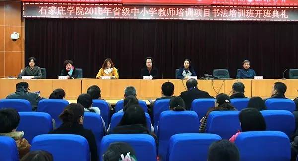 11月16日,河北省中小学书法教师培训(第二期)在石家庄学院举行开班仪式。来自全省140余名中小学书法教师参加了此次培训。 中国书法家协会河北省书法考级中心主任曹晓林、石家庄学院继续教育学院院长邱小捷、河北大学艺术学院院长刘宗超、中国书法家协会河北省书法考级中心常务副主任姜贵增,石家庄学院继续教育学院副院长邢秀茶出席此次开班仪式,石家庄学院继续教育学院主任李秀云主持本次开班仪式。参加此次开班仪式的还有来自河北省各基地工作站的20余名辅导老师。