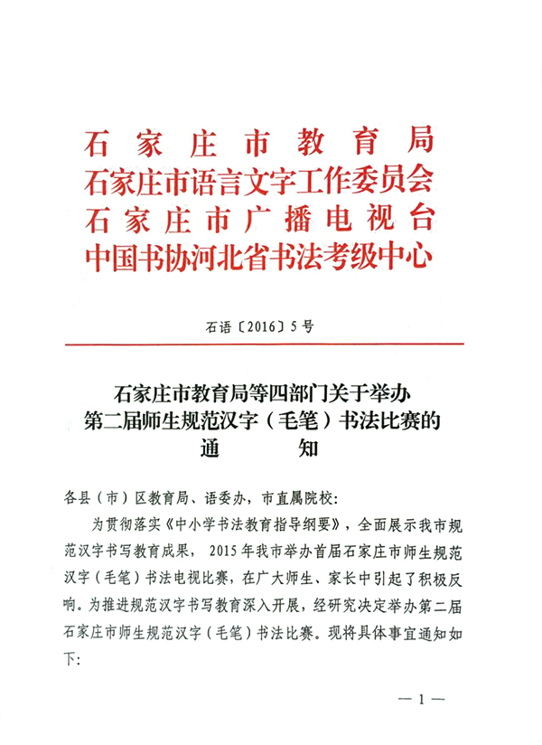 石家庄市第二届师生规范汉字(毛笔)书法比赛获奖名单