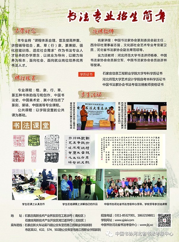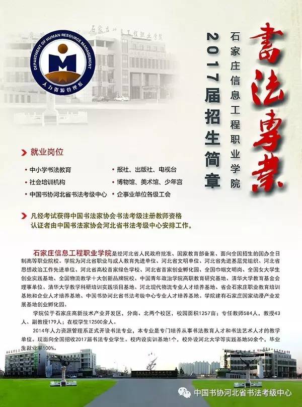 就业:中国书法家协会河北省书法考级中心负责推荐就业。
