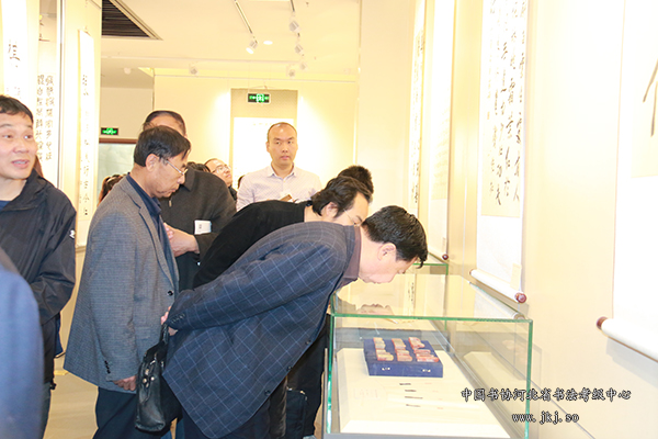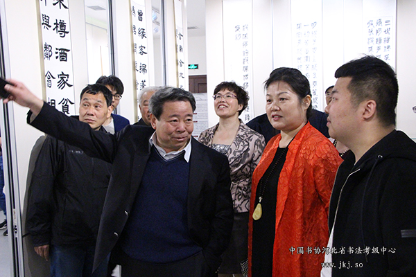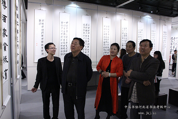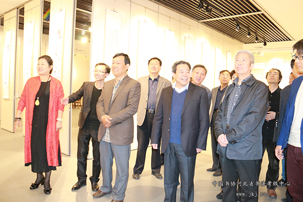 出席开幕式的嘉宾有:省教育厅原副厅长张益禄,河北省书法家协会副主席范硕,石家庄信息工程职业学院院长杨建立,省金融系统书法家协会主席齐永田,中国书法家协会河北省书法考级中心主任曹晓林,石家庄信息工程职业学院党委副书记贾东城,石家庄市教育局党委副书记苏志远,省政府资料处原处长杜玉山,河北省书法家协会篆刻委员会副秘书长李国良,石家庄信息工程职业学院院、系领导张树哲、张宇华、李运争、勾景秀、沈丽、陈新、施敏、范成宝、戎国新,中国书法家协会河北省书法考级中心副秘书长郝雨勤、崔春奇,书法家及任课教师赵彦林、郑进勇、田文彦、杨敬科、白静、杨宝成。参加今天开幕式的还有赵县、无极、行唐、灵寿、栾城等地书法考级工作站负责人及省会书法爱好者。