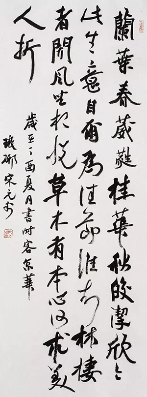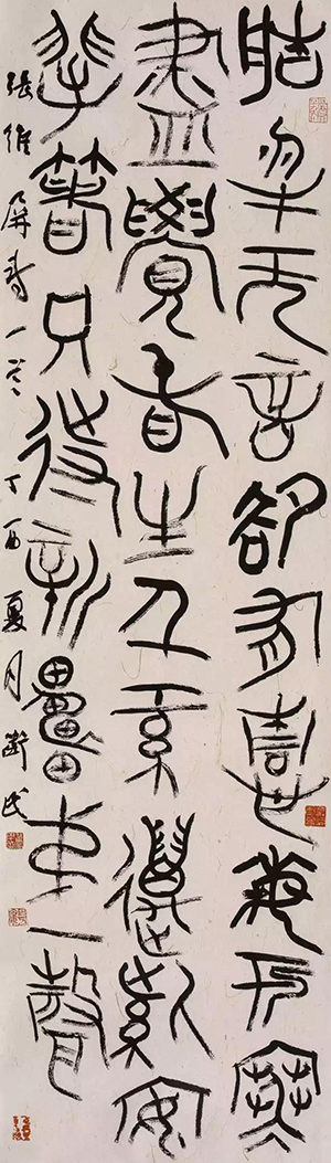 我们的这些学员,有初学,也有几十年苦苦独寻者,在生活的各方面皆有所成,而于书最难是观念的改变和提升。我因材施教,上溯流源,从古至今,带领大家进行了一场书法之旅。以改他人与某体、某书的锤炼教学方式,使他们在寻觅中找到五体乃至十数体中更贴合自己的东西。艺术在真善美的三个向度上,现实主义的真、浪漫主义的美是高度融合又各有侧重,然终其境是个性的突现。我在讲课中非常严肃的提出一个问题“我们的人生不是来做一场模仿秀的”,使大家明白我们执着于此是为什么!两年来大家渐初入书法堂奥,这次作品有临有创,五体兼杂,可以说坚定的走寻在已有的目标,假以时日是会形成一溪清流进入人们视野!