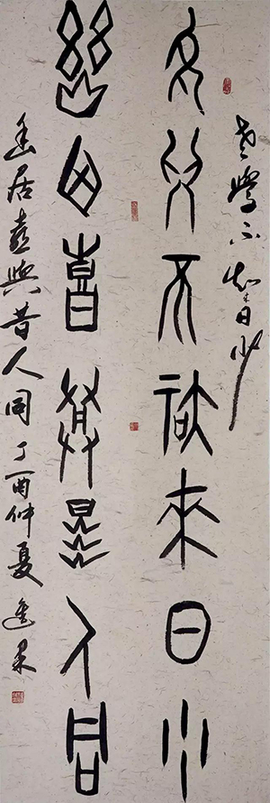 宋人周敦颐在《通书.文辞》中有“文以载道”的论述,今天习主席在文艺工作座谈会上讲“以道养书”、“书以载道”,使书法相比于古代的精英文化,今天以从未有的高度而更广泛的进入我们的视野,中国人也以从未有的喜爱融入生活。之所谓古道今承。这就是我们用此作展览主题的原因,至于承载多少,我们只有努力二字,努力做自己的字!努力作自己的人!