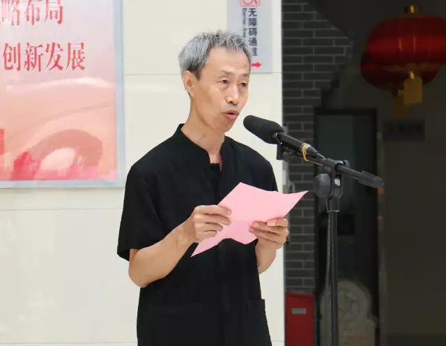 石家庄市博物馆馆长王鉴主持了开幕式,他首先介绍参加本次开幕式的领导和嘉宾。河北省书法考级中心主任曹晓林在本次开幕式上致辞,翟卫民在开幕式上介绍展览筹备情况并致答谢词,学员代表侯建国在开幕式上做了发言。