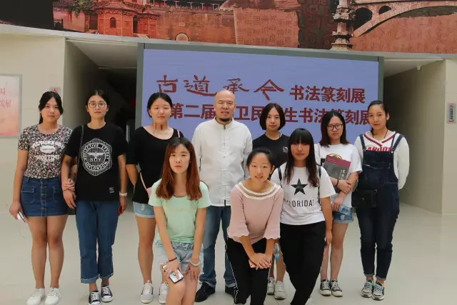 ▲石家庄信息工程职业学院书法专业学生与翟卫民老师合影留念