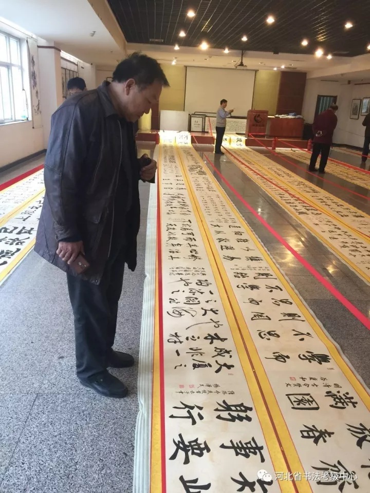 ▲书法爱好者观摩长卷
