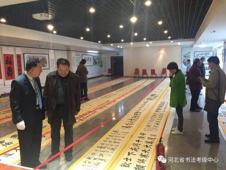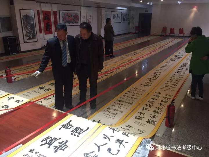 10月12日,在举国上下喜迎党的十九大召开之际,由河北省109名党员书法家挥毫写出的一套《习近平治国理政用典书法卷》,在河北省城石家庄闪亮呈现。这是河北省广大书法爱好者以满腔的热情,用书法艺术的形式颂扬伟大的党、强大的国和歌颂以习近平同志为核心的党中央丰功伟绩的具体表现,也是向党的十九大献出的一份厚重的礼物。 据悉,这套《习近平治国理政用典书法卷》的创作过程中,得到了中共河北省委宣传部、石家庄市委宣传部领导的亲切关怀和省、市书协领导多层面的技术指导,在河北省书法考级中心和石家庄书法培训基地联袂倡导下,组织了省会的中书协会员、中国书法家协会书法等级考试高级证书获得者、省市书协会会员109名书法家,采撷了自党的十八大以来习近平治国理政系列重要讲话中所引用的109条经典名句,以浓墨重彩的形式创作了109幅优质作品,挥就了长达190米《习近平治国理政用典百米书法卷》。 参加这次创作的书法家中,有德高望重的书法名家蔡子諤、李国华、李九元、黄宪律、张保田、马常民等老党员,也有新入党的年轻同志,对党对人民有着深厚的感情,对习近平总书记有着崇高的敬仰之情。书法家经过紧张书写、编辑、装裱,于10月12日将这部《习近平治国理政用典百米书法卷》完美的展现在世人面前。 书写这部《习近平治国理政用典百米书法卷》充分表达了河北省广大书法家对习近平同志治国理政的新思想、新思维和取得丰功伟绩热情歌颂;抒发了燕赵儿女对以习近平同志为核心的党中央的爱戴之情;更是向党的十九大奉献的一份厚重之礼。 此长卷近日将在河北省博物院隆重展出 。