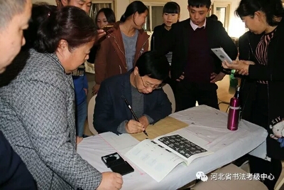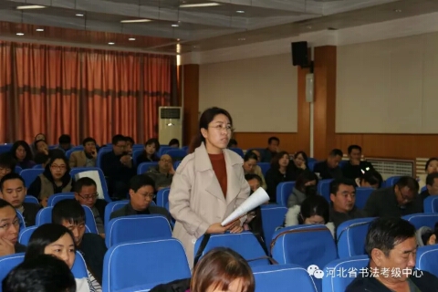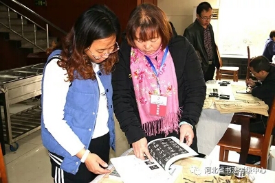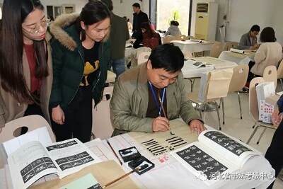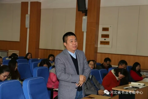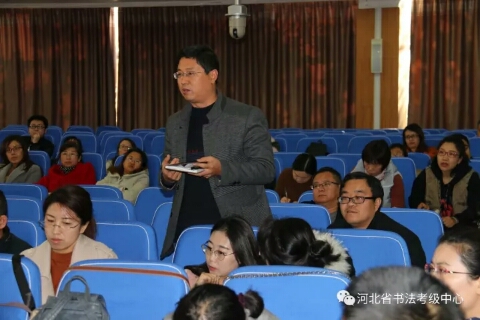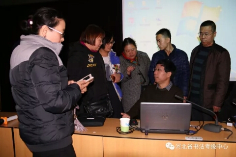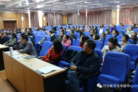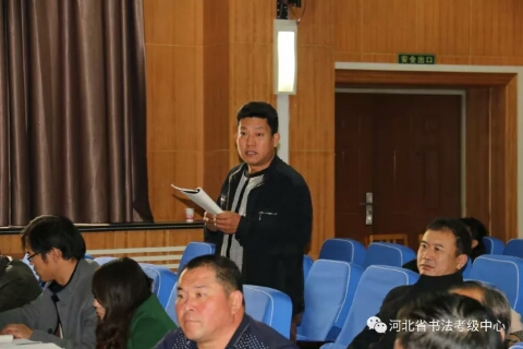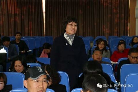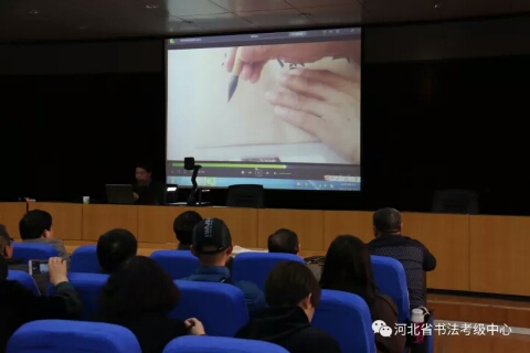 2017年河北省中小学书法教师培训国培项目继续进行,今天继续由河北师大书法教师杨春老师为学员讲授楷书技法。杨老师首先为大家展示了欧、褚、颜、柳、赵诸体的书写视频,具体入微地为学员讲解书写时应注意的细节。之后,学员们就学习书法的过程中容易遇到的问题做出提问,杨老师一一解答,细致而详尽。下午进行分组练习,由各位辅导老师进行辅导,杨老师到各班观看并指导学员练习。