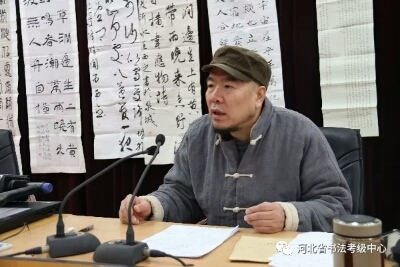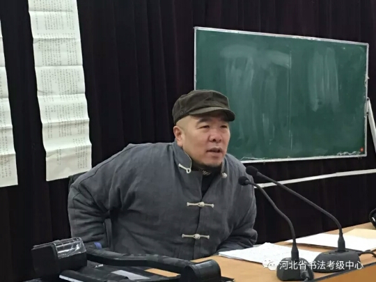 2017年河北省中小学书法教师培训国培项目继续进行,上午由中国书法家协会书法考级中心首席考官翟卫民为学员讲授书法创作的形式与内容,下午对学员作品进行点评、指导。