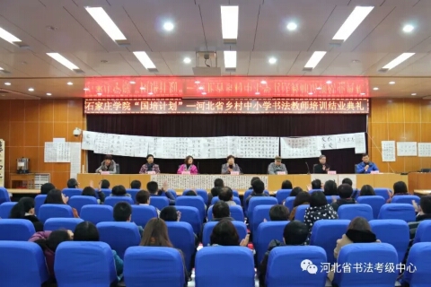 11月17日,2017年河北省中小学书法教师培训国培项目结业典礼及学员作品结课展如期进行。河北省书法考级中心主任曹晓林、石家庄学院继续教育学院副院长邢秀茶、河北省书法考级中心常务副主任姜贵增、中国书法家协会书法考级中心首席考官翟卫民、河北师范大学书法讲师杨春出席结业典礼。石家庄学院继续教育学院主任李秀云主持本次活动。