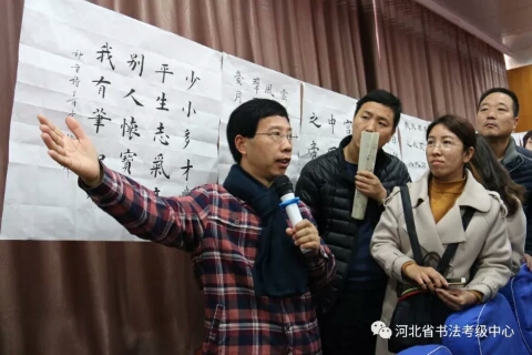 结业典礼结束后,中国书法家协会书法考级中心首席考官翟卫民、河北师范大学书法讲师杨春老师分别为学员作品进行一一点评。
