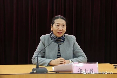 河北省书法考级中心主任曹晓林、石家庄学院继续教育学院院长邱小捷、哲学博士河北书法教育名家许敬辉,石家庄学院继续教育学院副院长邢秀茶主持本次活动。参加此次开班仪式的还有来自省书法考级中心各基地工作站的10余名辅导老师。在开班仪式上曹晓林主任、邱小捷院长分别致辞。学员代表在开班仪式上发言。