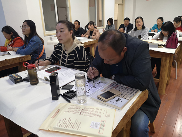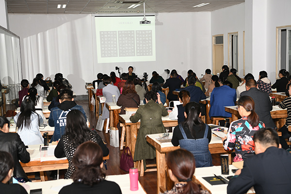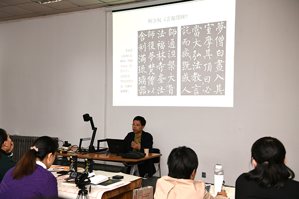 河北师范大学书法讲师杨春为学员讲授楷书的形成与技法