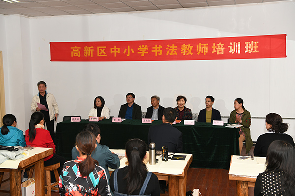 在开班仪式上,高新区社会发展局李在兰局长说,2013年教育部下发《中小学书法教育的指导纲要》,明确书法教育进校园。我区各中小学2013年以来积极探索书法教育,取得了可喜的成绩。今天,我区再次举办书法教师培训班,目标是最终实现一批取得书法指导教师资格证书的书法教师团队,使我区各学校书法教育更加规范、专业。十八大以来,国家积极推进优秀传统文化的继承和发扬,书法文化也越来越受到社会的重视,书法进课堂、书法进社区、书法进企业,全社会逐步形成了一个喜爱书法、学习书法的热潮。从当前中高考政策的趋势看,把书法列入中高考的内容,写不好字必将会影响考生成绩,必然影响教学质量的提升。但书法教师严重匮乏,影响了书法教育的正常进行。因此,培养自己的书法教师势在必行。