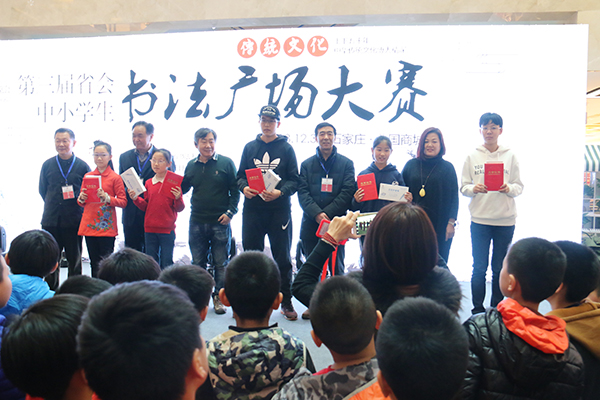 大赛采取现场书写、现场评奖的办法公开进行。按规定参加广场大赛的学生在十五分钟之内用自己熟悉的书体书写“大象无形”四个字。经过评委现场评议出一等奖5名,二等奖10名,三等奖20名,优秀奖70名。石书法艺术中心主任曹晓林,石家庄日报社第二届文房四宝博览会主任张琪琳和评委为获奖学生颁发了获奖证书和奖品。