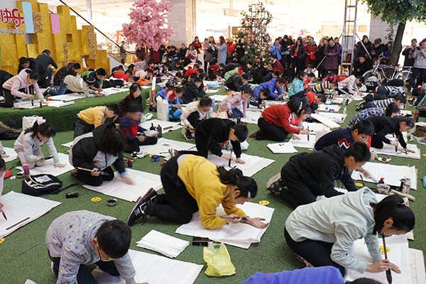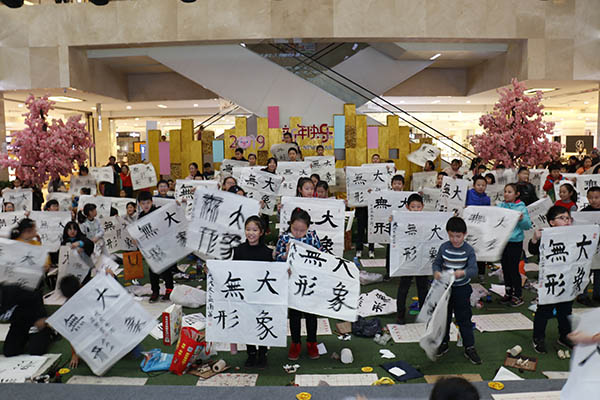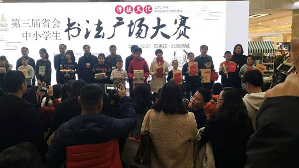 在辞旧迎新之际,石家庄风泽书法艺术中心、石家庄日报主办的第三届省会中小学生广场书法赛于12月31日在石家庄北国商城成功举办。来自省会绿都小学、快乐书法学堂、青草书院、茗墨斋、润心书艺、清木苑、杨敬科书法工作室、刘超书法工作室、酔墨缘阁、羽墨、百晓学堂等培训机构共有105名小朋友参加此次广场书法大赛。