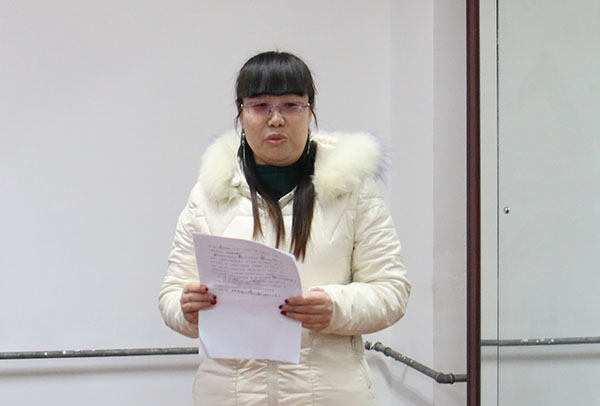 曹晓林在致辞中说经过四个月时间的培训学习,我们进步了!我们的进步源于我们的努力,我们的努力源于正确的导向,开发区领导出于对传统文化的敬畏之心,首先发起对传统文化特别是书法艺术的学习,这无疑是一个正确的选择,书法作为一门艺术,是中华五千年文明的结晶,是中华民族的瑰宝,也是中国及周边国家特有的文字艺术。曹晓林对肯定这次培训成果,她说,经过四个月的实践,我认为这是书法培训最成功的一次。我们这次培训,注重的不是形式,而是效果,时间长、任务明、效果好。