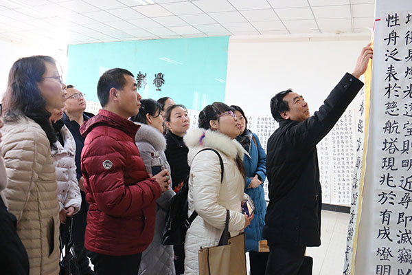 2019年1月19日,石家庄高新区首届中小学书法教师培训班结业典礼暨结课展成功举行。高新区工委委员、管委会副主任王树欣,高新区社会发展局局长李在兰,高新区社会发展局副局长李忠,中心主任曹晓林、常务主任姜贵增,高新区教育研究室主任郎翠华,中心教授郑进勇、讲师杨宝成、马战国等出席结业典礼。