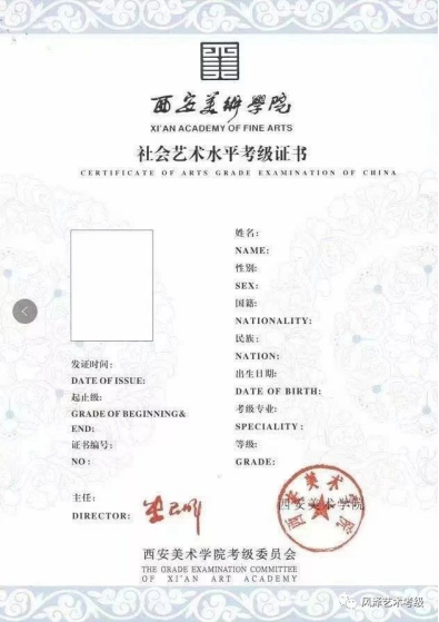 试卷均由西安美术学院考级委员会考官评审,考试后考试合格者3个月左右颁发证书。