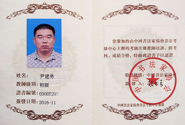 中国书法家协会初级书法注册教师