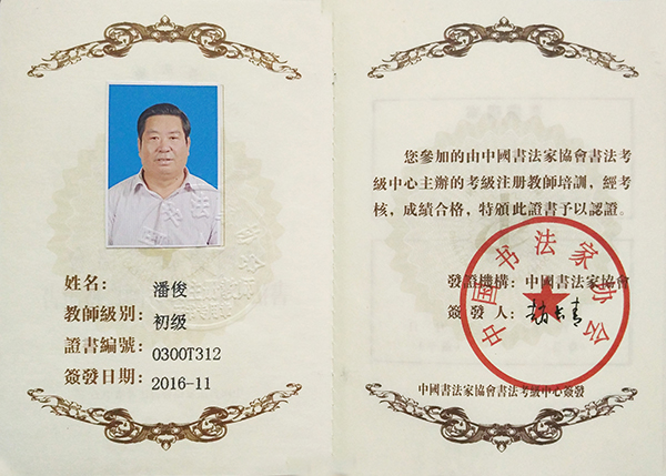 中国书法家协会初级书法注册教师