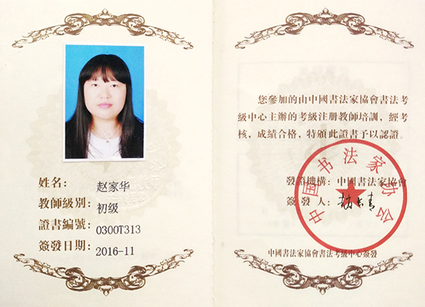 中国书法家协会初级书法注册教师