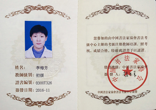 中国书法家协会初级书法注册教师