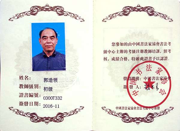 中国书法家协会初级书法注册教师