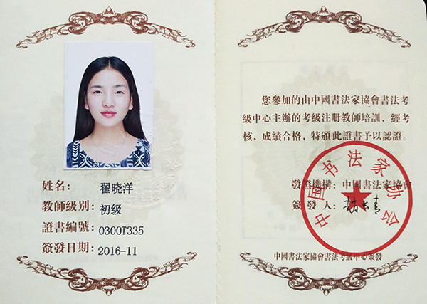中国书法家协会初级书法注册教师