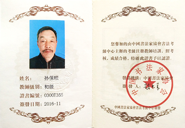 中国书法家协会初级书法注册教师