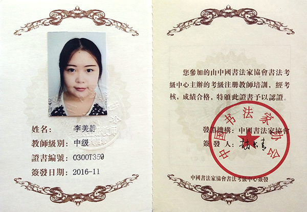 中国书法家协会中级书法注册教师