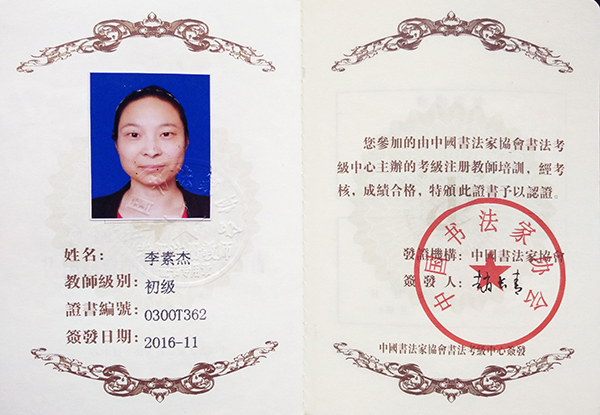 中国书法家协会初级书法注册教师