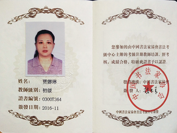 中国书法家协会初级书法注册教师